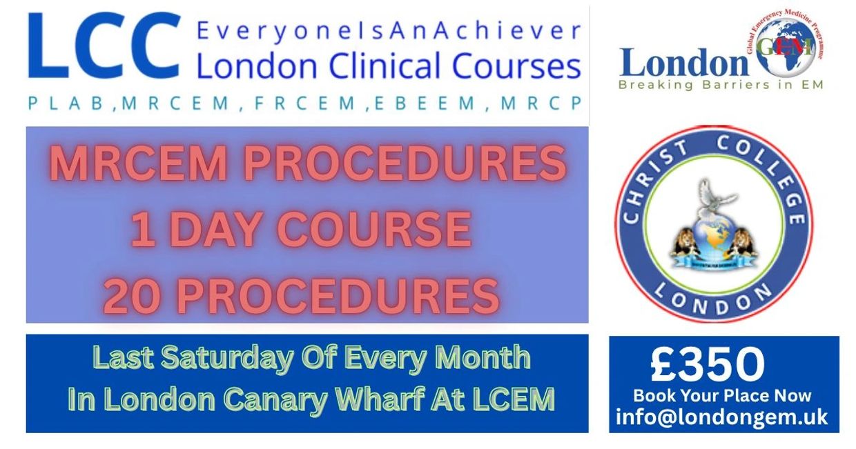 Team LGEM is proud to announce the first-ever MRCEM Procedures Workshop, specially designed for candidates preparing for the MRCEM OSCE Examination 2026. This is a face-to-face, hands-on procedural course with real-time mock practice, marking schemes, and personalised one-to-one feedback.